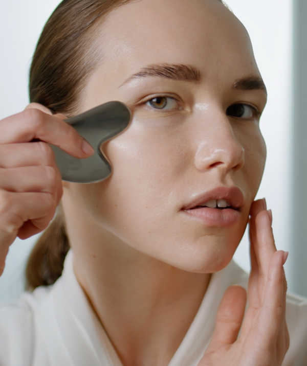 Crafted from cool-to-the-touch stainless steel, this Gua Sha is designed to boost circulation, stimulate lymphatic flow, depuff lift contour the face and neck.
